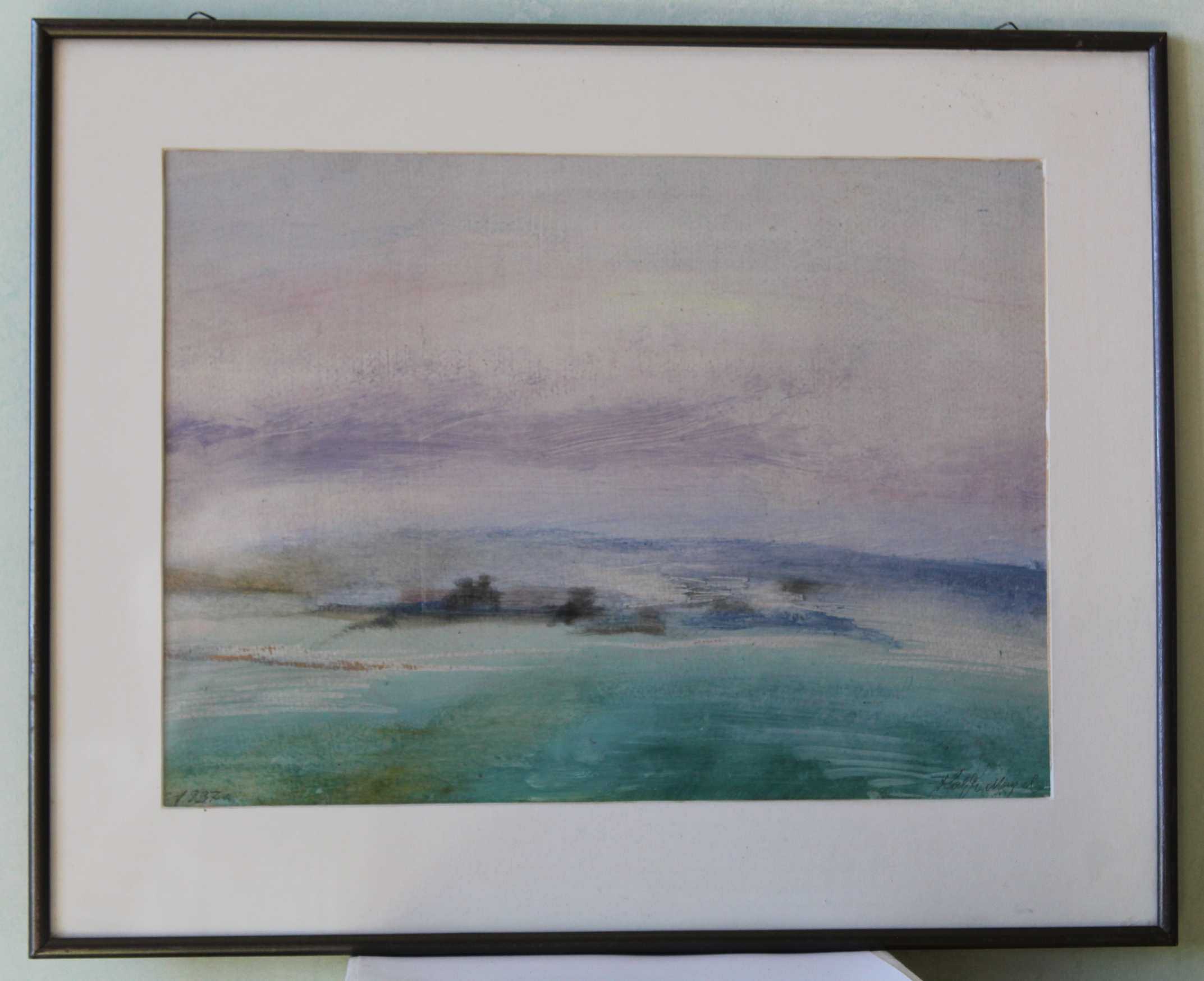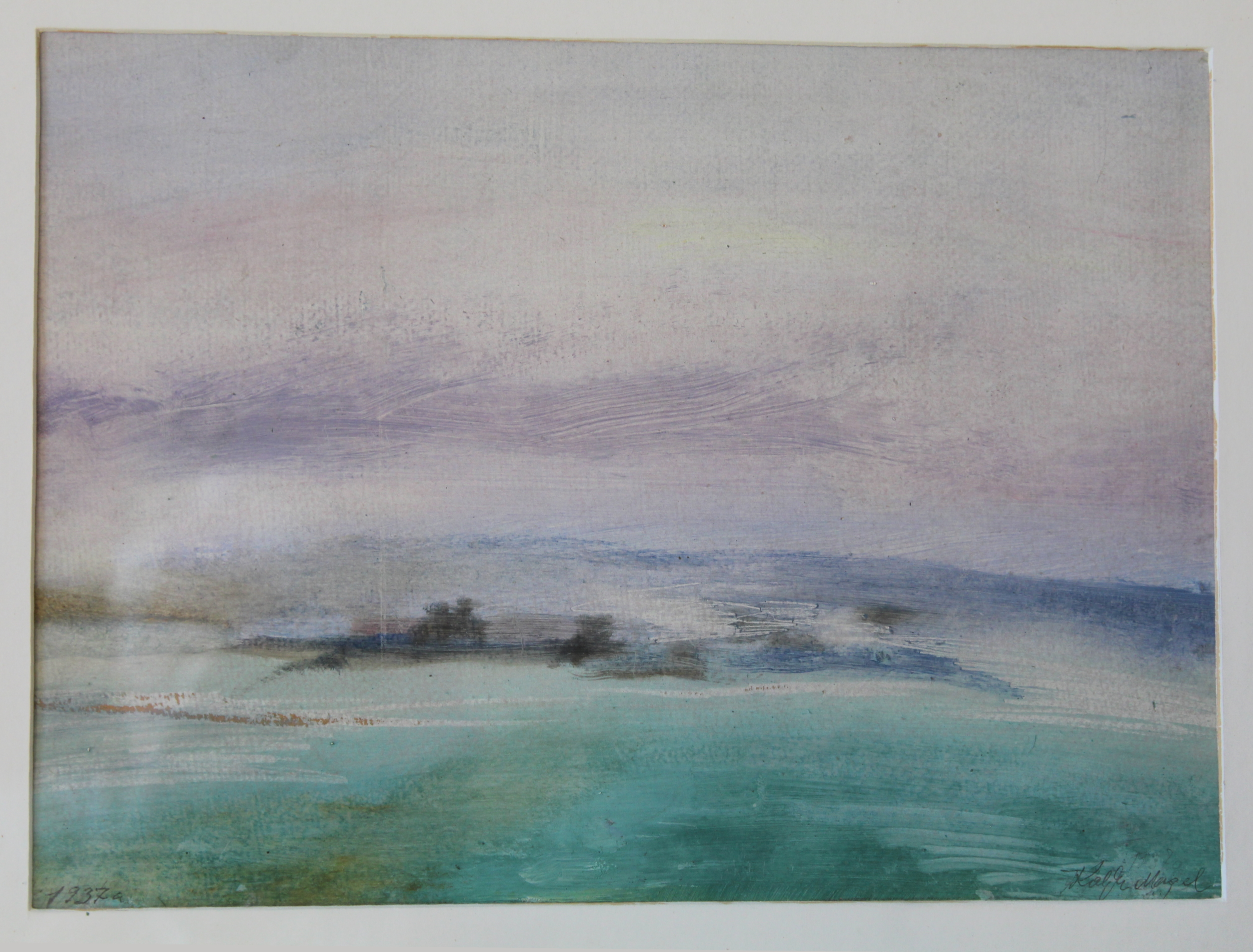 “Hommikune udu” ( Ahja Rautsepa talu põldudel hommikuudu ) akvarell, paber 1937 (29×38.5 cm)